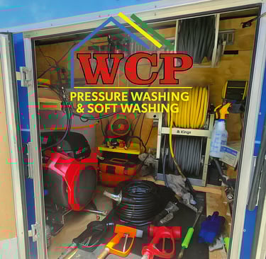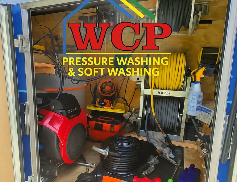 Soft washing uses gentle water pressure and eco-friendly cleaners to protect surfaces.